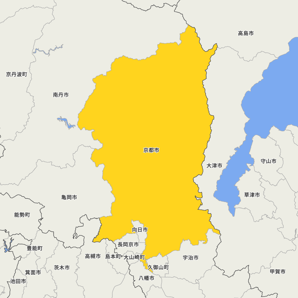 京都府京都市の地図を表示します。 マップ・イットは、地図素材や白地図が無料でダウンロードできるサイトです。印刷やWebなどの素材として商用利用できます。対応する地域は日本全域、八地方区分、47都道府県、政令指定都市、特別区、市町村です。
