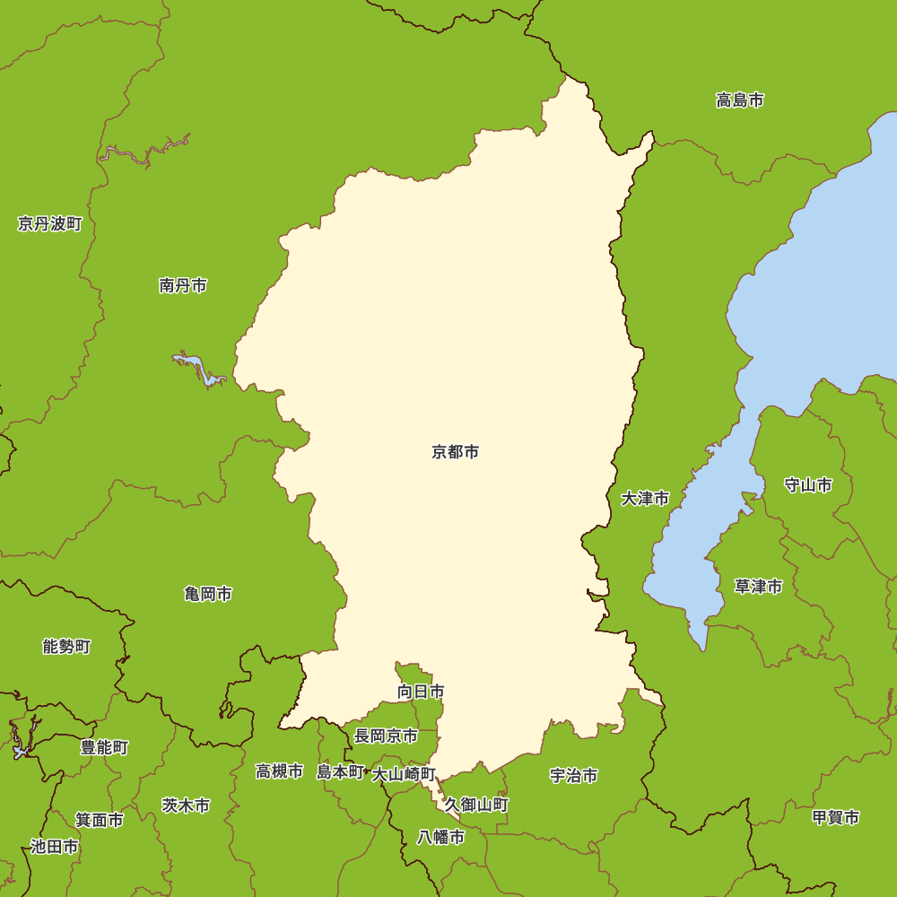 京都府京都市の地図を表示します。 マップ・イットは、地図素材や白地図が無料でダウンロードできるサイトです。印刷やWebなどの素材として商用利用できます。対応する地域は日本全域、八地方区分、47都道府県、政令指定都市、特別区、市町村です。