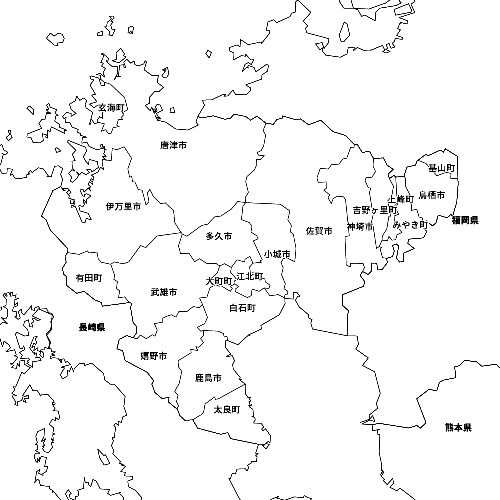 佐賀県の地図を表示します。 マップ・イットは、地図素材や白地図が無料でダウンロードできるサイトです。印刷やWebなどの素材として商用利用できます。対応する地域は日本全域、八地方区分、47都道府県、政令指定都市、特別区、市町村です。