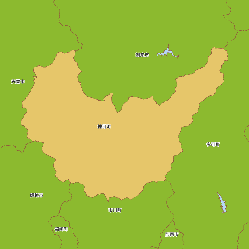 兵庫県神崎郡神河町の地図を表示します。 マップ・イットは、地図素材や白地図が無料でダウンロードできるサイトです。印刷やWebなどの素材として商用利用できます。対応する地域は日本全域、八地方区分、47都道府県、政令指定都市、特別区、市町村です。