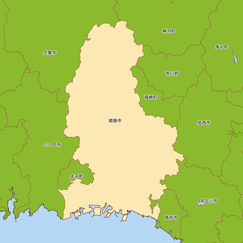 兵庫県姫路市の地図を表示します。 マップ・イットは、地図素材や白地図が無料でダウンロードできるサイトです。印刷やWebなどの素材として商用利用できます。対応する地域は日本全域、八地方区分、47都道府県、政令指定都市、特別区、市町村です。