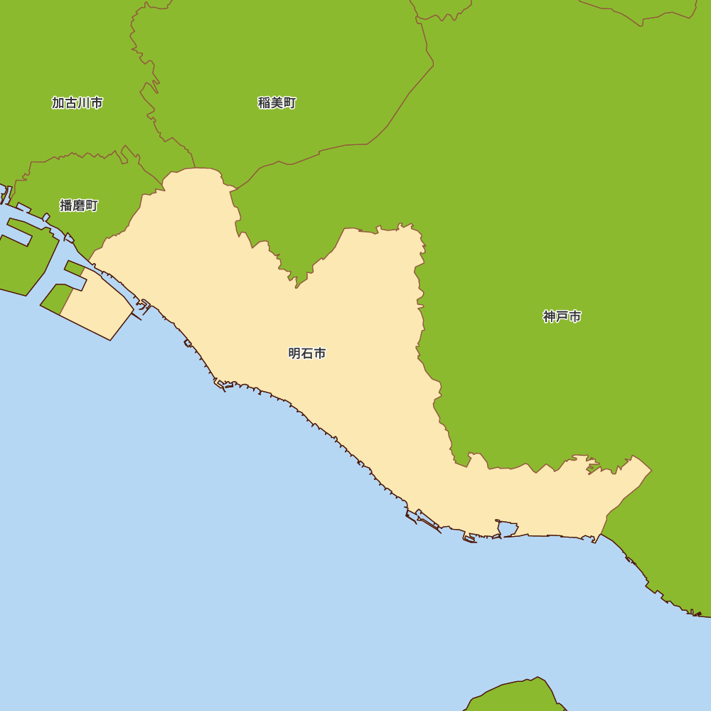 兵庫県明石市の地図を表示します。 マップ・イットは、地図素材や白地図が無料でダウンロードできるサイトです。印刷やWebなどの素材として商用利用できます。対応する地域は日本全域、八地方区分、47都道府県、政令指定都市、特別区、市町村です。