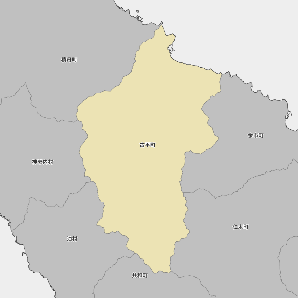 北海道後志総合振興局古平郡古平町の地図を表示します。 マップ・イットは、地図素材や白地図が無料でダウンロードできるサイトです。印刷やWebなどの素材として商用利用できます。対応する地域は日本全域、八地方区分、47都道府県、政令指定都市、特別区、市町村です。