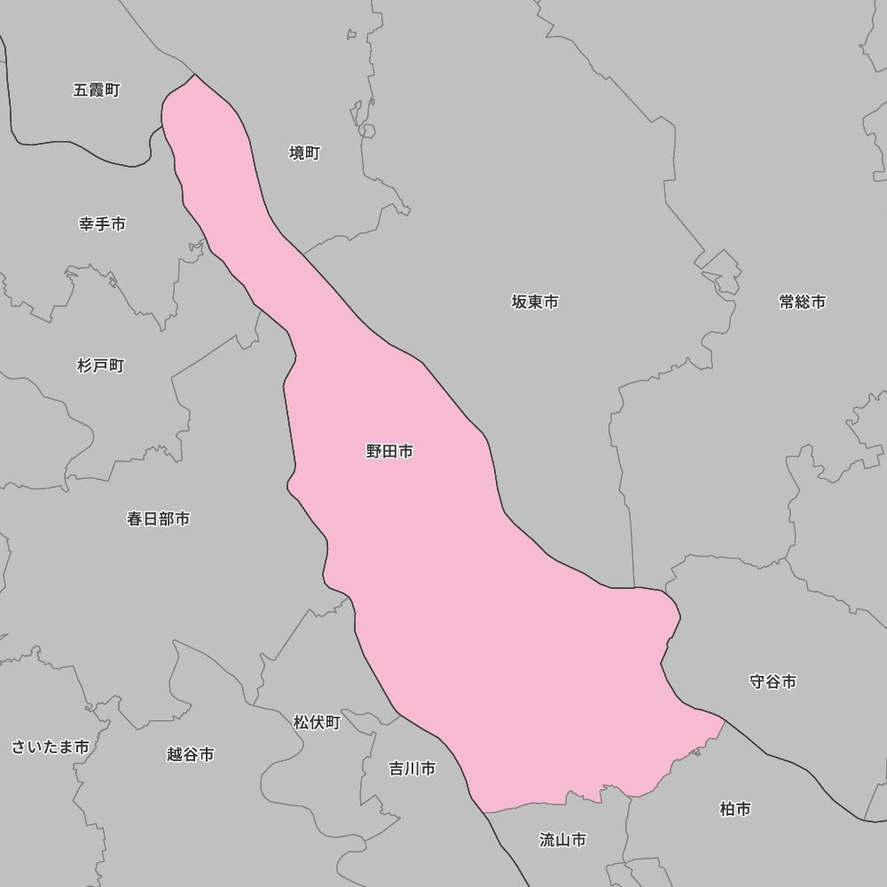千葉県野田市の地図を表示します。 マップ・イットは、地図素材や白地図が無料でダウンロードできるサイトです。印刷やWebなどの素材として商用利用できます。対応する地域は日本全域、八地方区分、47都道府県、政令指定都市、特別区、市町村です。