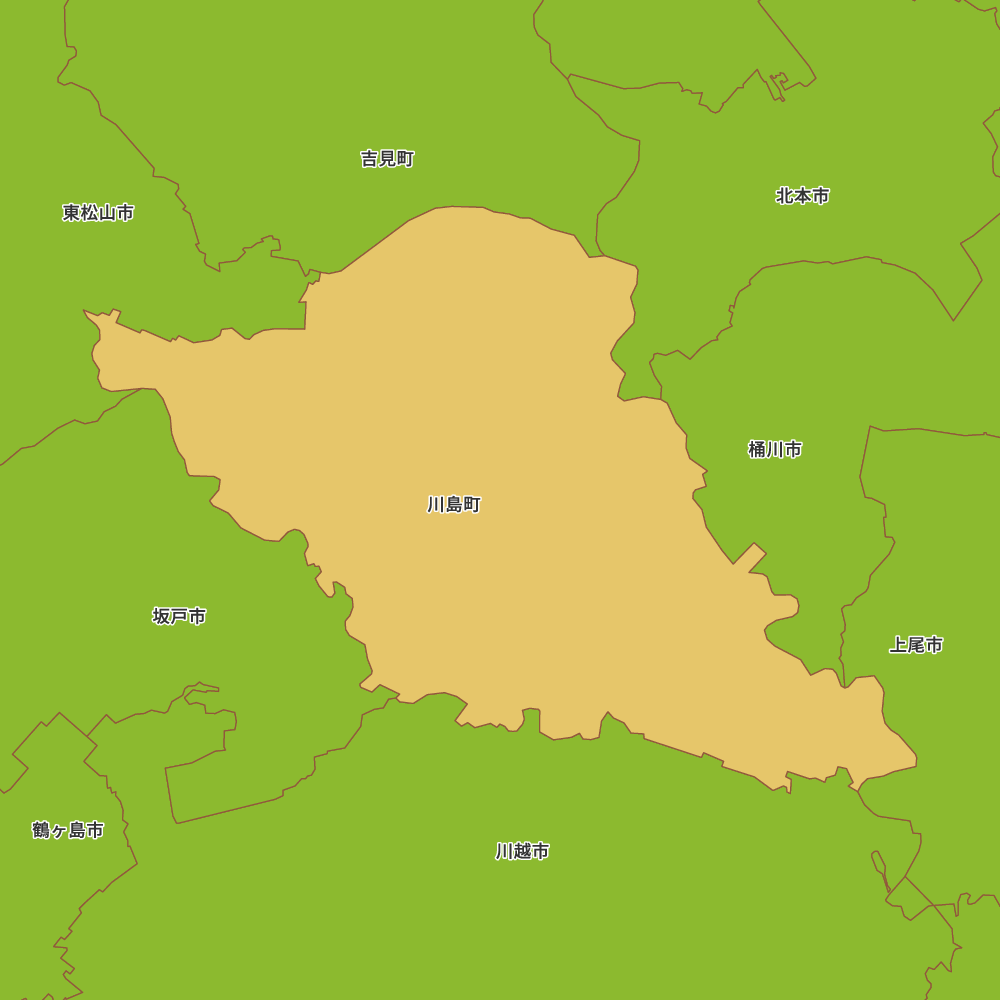 埼玉県比企郡川島町の地図を表示します。 マップ・イットは、地図素材や白地図が無料でダウンロードできるサイトです。印刷やWebなどの素材として商用利用できます。対応する地域は日本全域、八地方区分、47都道府県、政令指定都市、特別区、市町村です。