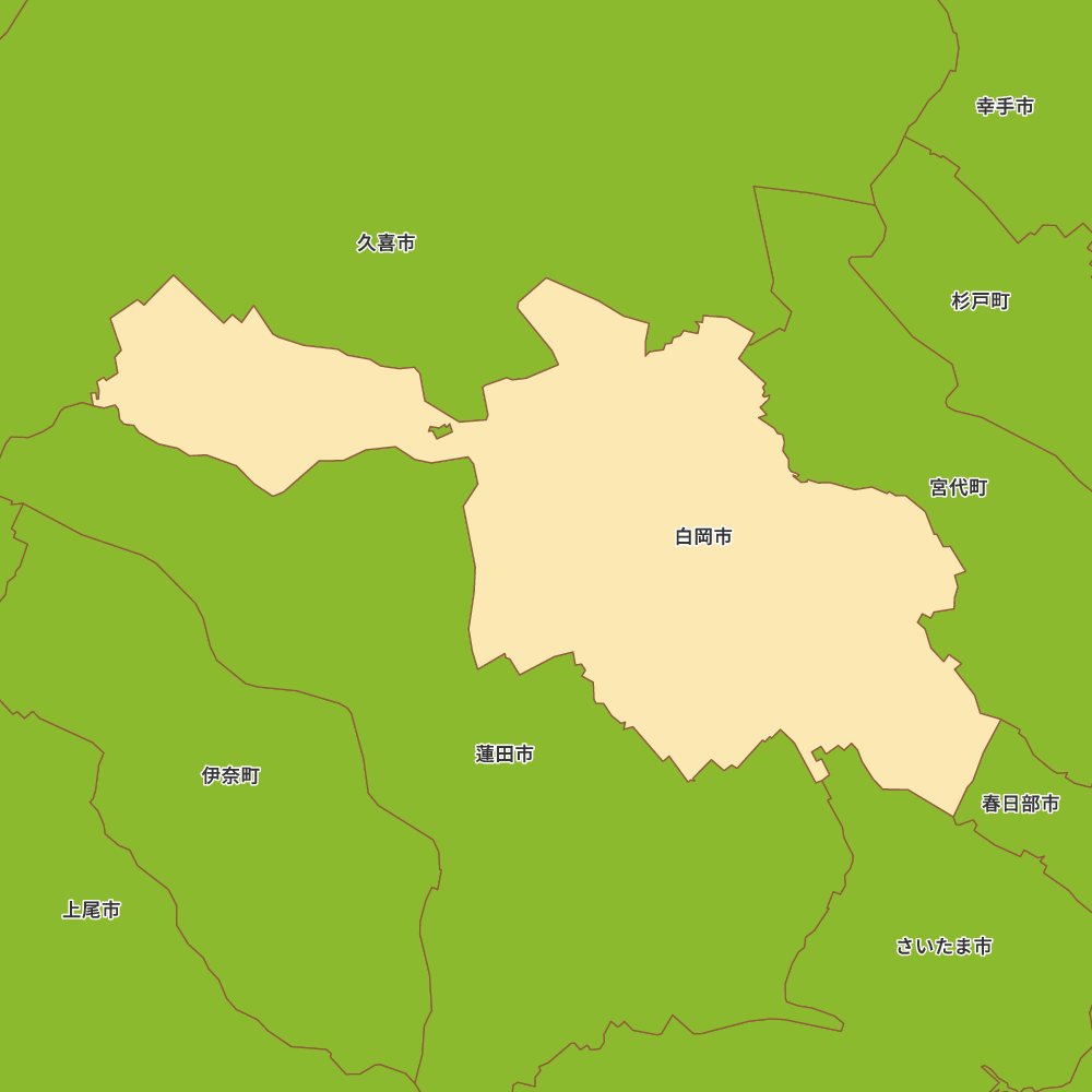 埼玉県白岡市の地図を表示します。 マップ・イットは、地図素材や白地図が無料でダウンロードできるサイトです。印刷やWebなどの素材として商用利用できます。対応する地域は日本全域、八地方区分、47都道府県、政令指定都市、特別区、市町村です。