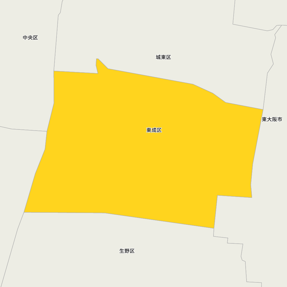 大阪府大阪市東成区の地図を表示します。 マップ・イットは、地図素材や白地図が無料でダウンロードできるサイトです。印刷やWebなどの素材として商用利用できます。対応する地域は日本全域、八地方区分、47都道府県、政令指定都市、特別区、市町村です。