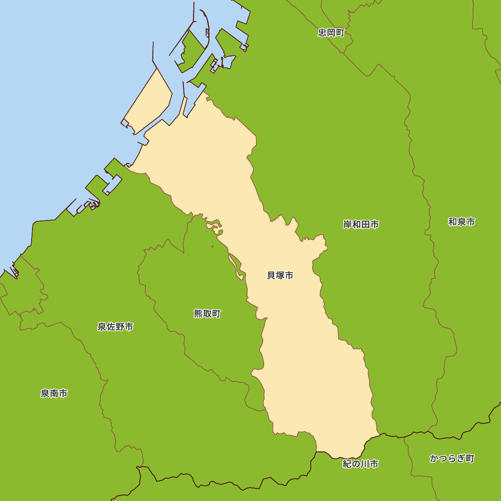 大阪府貝塚市の地図を表示します。 マップ・イットは、地図素材や白地図が無料でダウンロードできるサイトです。印刷やWebなどの素材として商用利用できます。対応する地域は日本全域、八地方区分、47都道府県、政令指定都市、特別区、市町村です。