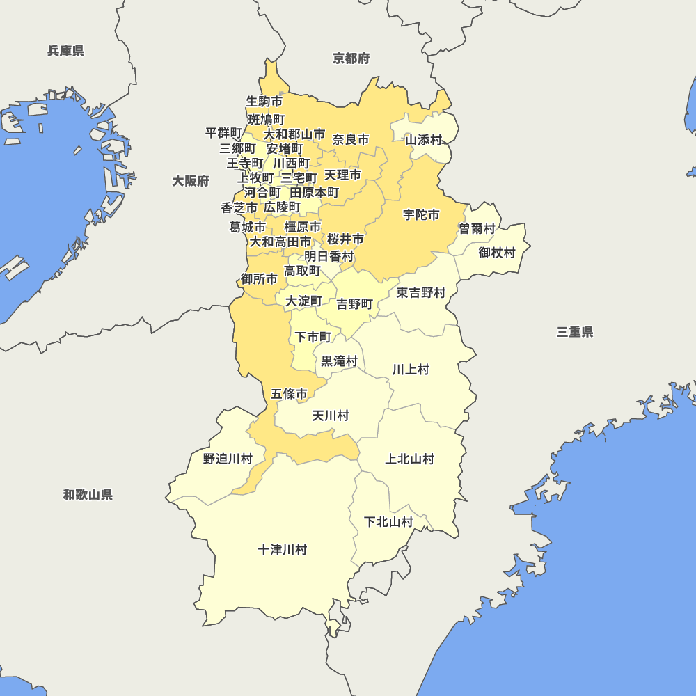 奈良県の地図を表示します。 マップ・イットは、地図素材や白地図が無料でダウンロードできるサイトです。印刷やWebなどの素材として商用利用できます。対応する地域は日本全域、八地方区分、47都道府県、政令指定都市、特別区、市町村です。