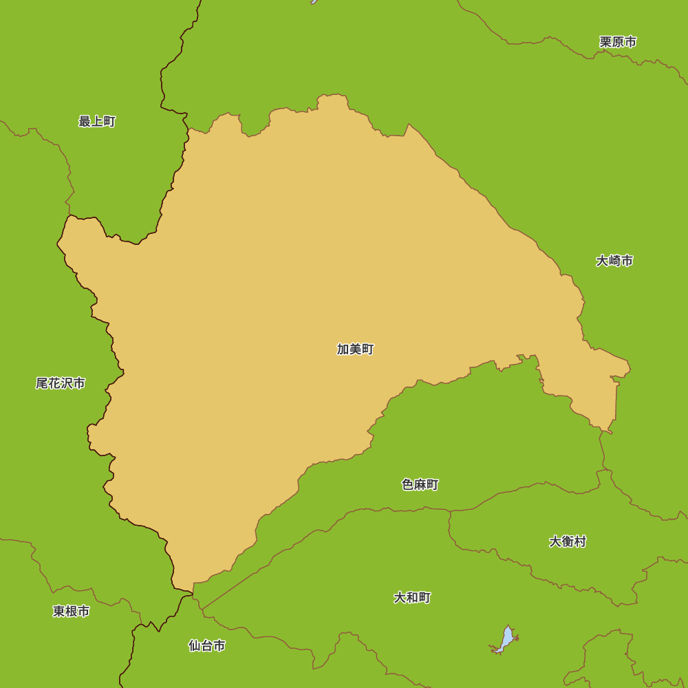 宮城県加美郡加美町の地図を表示します。 マップ・イットは、地図素材や白地図が無料でダウンロードできるサイトです。印刷やWebなどの素材として商用利用できます。対応する地域は日本全域、八地方区分、47都道府県、政令指定都市、特別区、市町村です。
