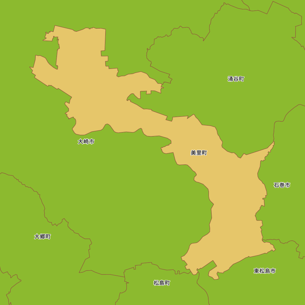 宮城県遠田郡美里町の地図を表示します。 マップ・イットは、地図素材や白地図が無料でダウンロードできるサイトです。印刷やWebなどの素材として商用利用できます。対応する地域は日本全域、八地方区分、47都道府県、政令指定都市、特別区、市町村です。