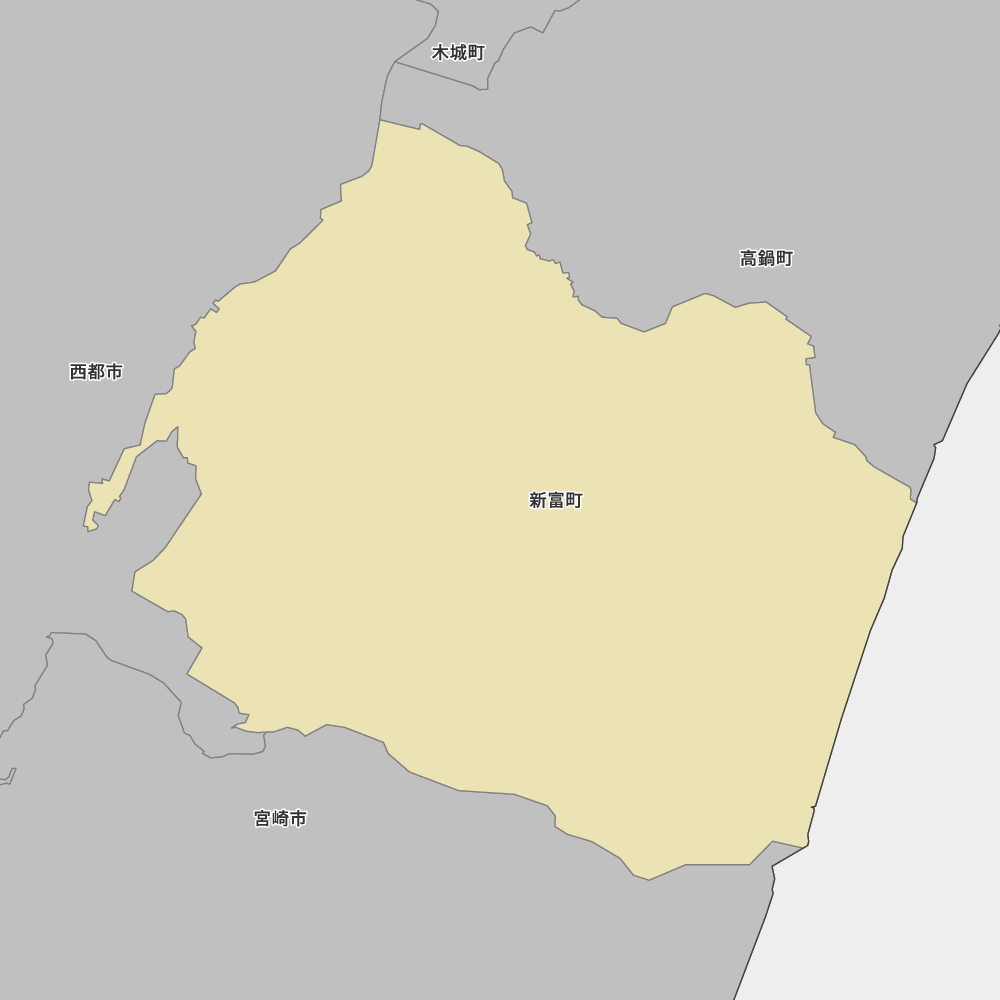 宮崎県児湯郡新富町の地図を表示します。 マップ・イットは、地図素材や白地図が無料でダウンロードできるサイトです。印刷やWebなどの素材として商用利用できます。対応する地域は日本全域、八地方区分、47都道府県、政令指定都市、特別区、市町村です。