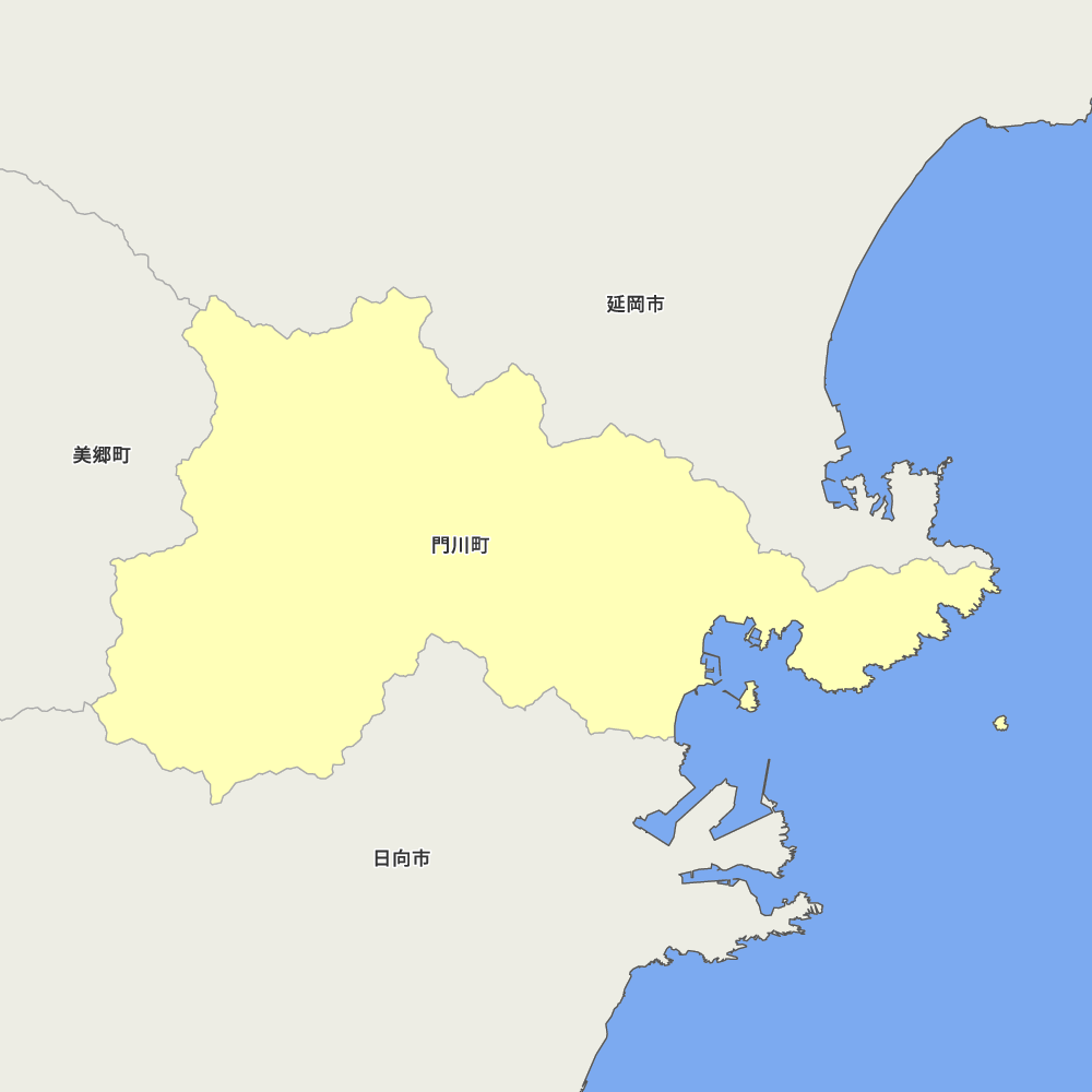 宮崎県東臼杵郡門川町の地図を表示します。 マップ・イットは、地図素材や白地図が無料でダウンロードできるサイトです。印刷やWebなどの素材として商用利用できます。対応する地域は日本全域、八地方区分、47都道府県、政令指定都市、特別区、市町村です。
