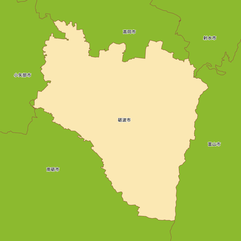 富山県砺波市の地図を表示します。 マップ・イットは、地図素材や白地図が無料でダウンロードできるサイトです。印刷やWebなどの素材として商用利用できます。対応する地域は日本全域、八地方区分、47都道府県、政令指定都市、特別区、市町村です。