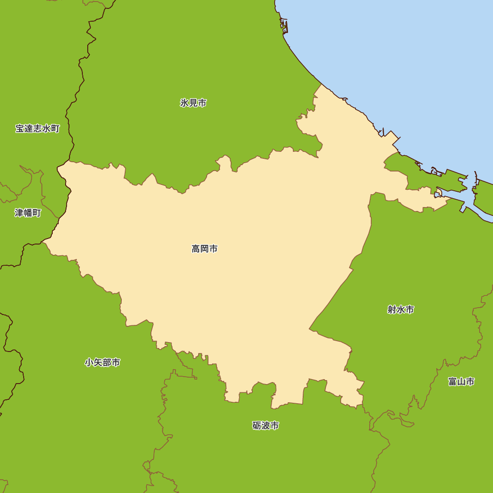 富山県高岡市の地図を表示します。 マップ・イットは、地図素材や白地図が無料でダウンロードできるサイトです。印刷やWebなどの素材として商用利用できます。対応する地域は日本全域、八地方区分、47都道府県、政令指定都市、特別区、市町村です。