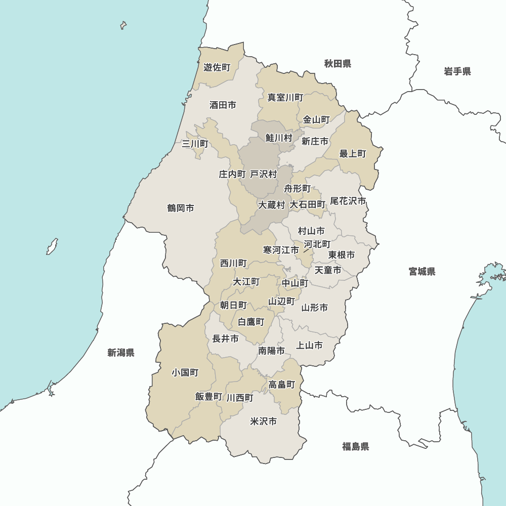 山形県の地図を表示します。 マップ・イットは、地図素材や白地図が無料でダウンロードできるサイトです。印刷やWebなどの素材として商用利用できます。対応する地域は日本全域、八地方区分、47都道府県、政令指定都市、特別区、市町村です。