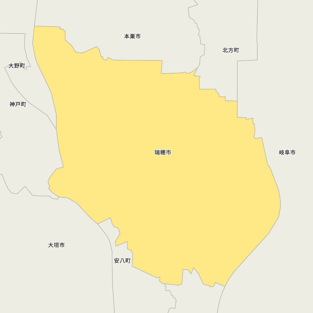 岐阜県瑞穂市の地図を表示します。 マップ・イットは、地図素材や白地図が無料でダウンロードできるサイトです。印刷やWebなどの素材として商用利用できます。対応する地域は日本全域、八地方区分、47都道府県、政令指定都市、特別区、市町村です。