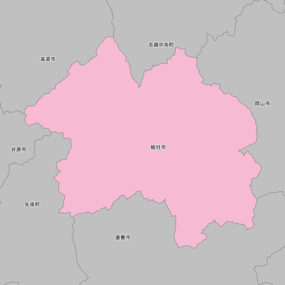 岡山県総社市の地図を表示します。 マップ・イットは、地図素材や白地図が無料でダウンロードできるサイトです。印刷やWebなどの素材として商用利用できます。対応する地域は日本全域、八地方区分、47都道府県、政令指定都市、特別区、市町村です。