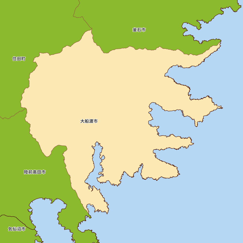 岩手県大船渡市の地図を表示します。 マップ・イットは、地図素材や白地図が無料でダウンロードできるサイトです。印刷やWebなどの素材として商用利用できます。対応する地域は日本全域、八地方区分、47都道府県、政令指定都市、特別区、市町村です。