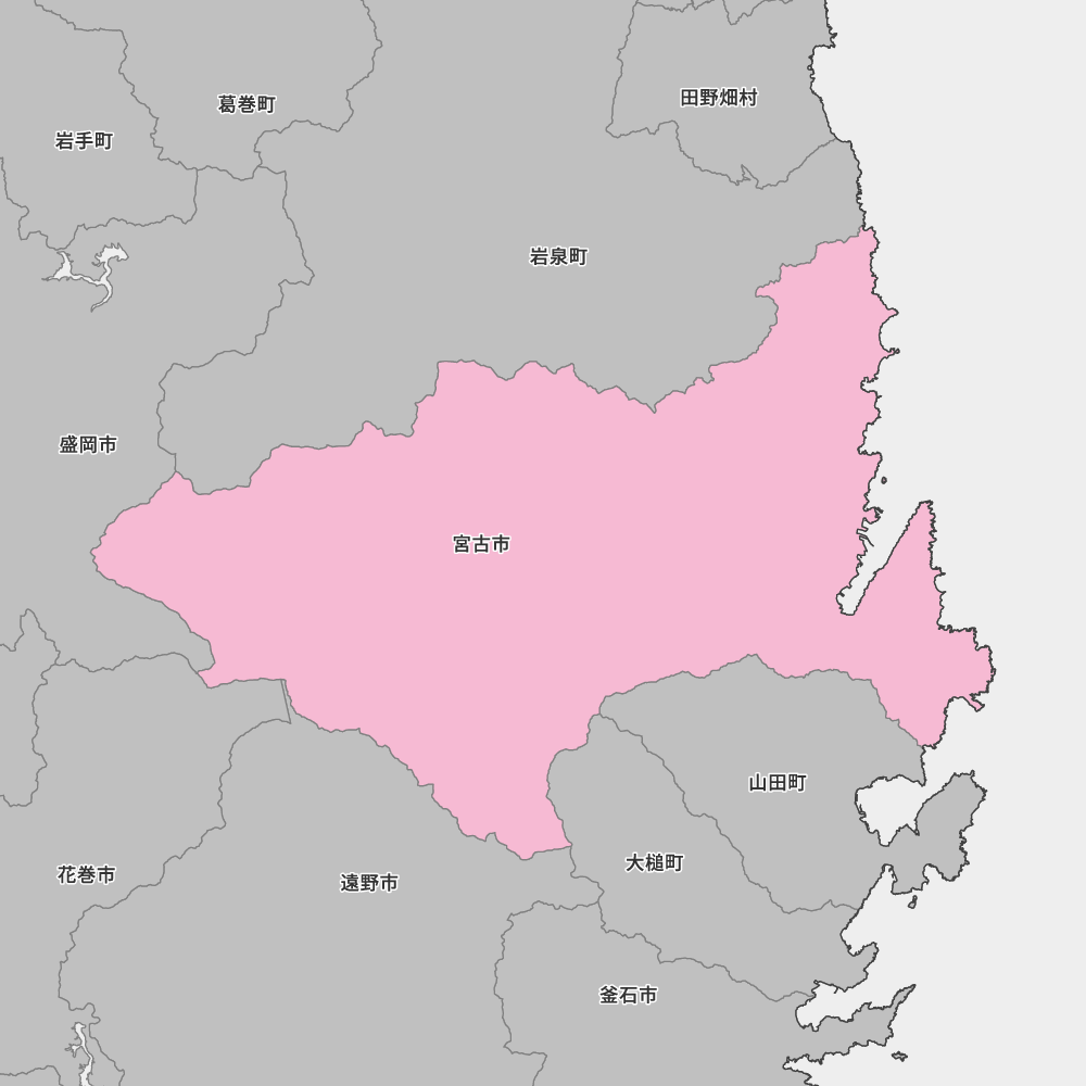 岩手県宮古市の地図を表示します。 マップ・イットは、地図素材や白地図が無料でダウンロードできるサイトです。印刷やWebなどの素材として商用利用できます。対応する地域は日本全域、八地方区分、47都道府県、政令指定都市、特別区、市町村です。