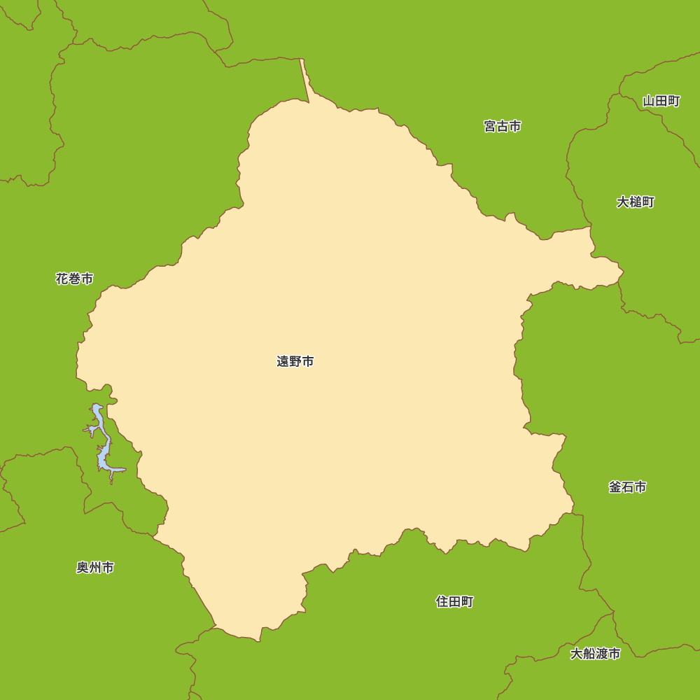 岩手県遠野市の地図を表示します。 マップ・イットは、地図素材や白地図が無料でダウンロードできるサイトです。印刷やWebなどの素材として商用利用できます。対応する地域は日本全域、八地方区分、47都道府県、政令指定都市、特別区、市町村です。