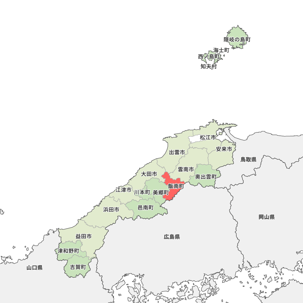 島根県飯石郡飯南町の地図を表示します。 マップ・イットは、地図素材や白地図が無料でダウンロードできるサイトです。印刷やWebなどの素材として商用利用できます。対応する地域は日本全域、八地方区分、47都道府県、政令指定都市、特別区、市町村です。