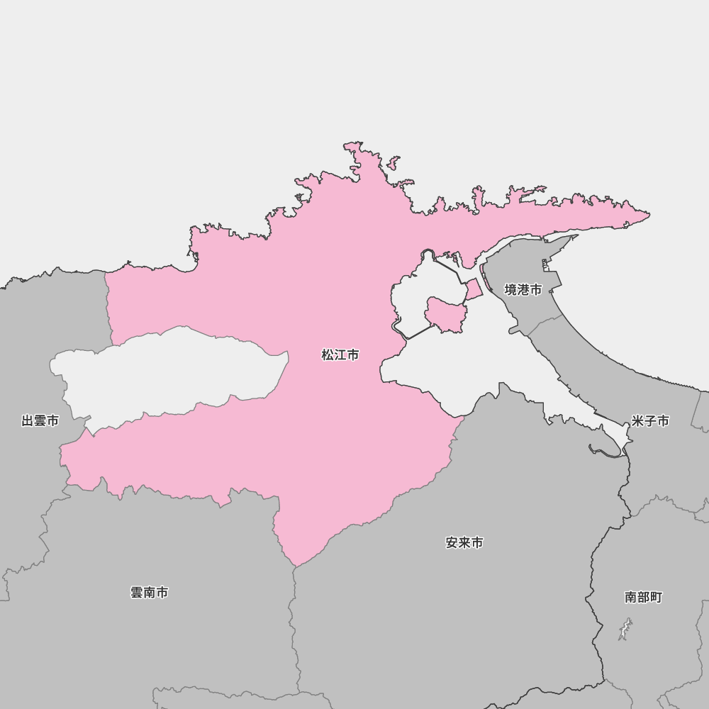 島根県松江市の地図を表示します。 マップ・イットは、地図素材や白地図が無料でダウンロードできるサイトです。印刷やWebなどの素材として商用利用できます。対応する地域は日本全域、八地方区分、47都道府県、政令指定都市、特別区、市町村です。