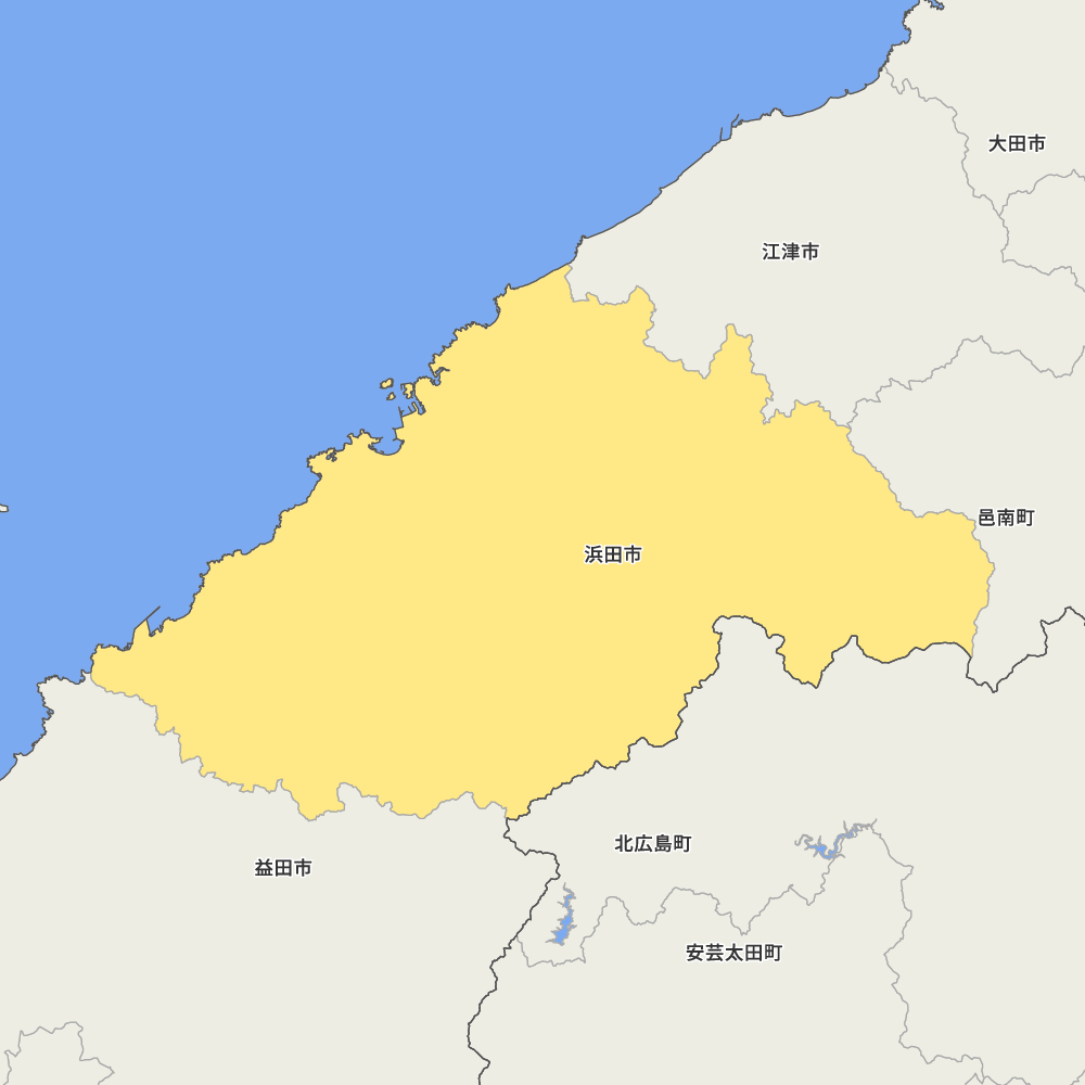 島根県浜田市の地図を表示します。 マップ・イットは、地図素材や白地図が無料でダウンロードできるサイトです。印刷やWebなどの素材として商用利用できます。対応する地域は日本全域、八地方区分、47都道府県、政令指定都市、特別区、市町村です。