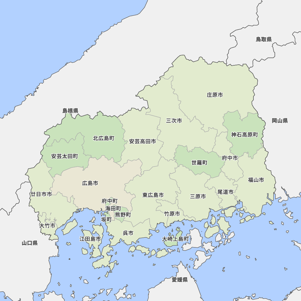 広島県の地図を表示します。 マップ・イットは、地図素材や白地図が無料でダウンロードできるサイトです。印刷やWebなどの素材として商用利用できます。対応する地域は日本全域、八地方区分、47都道府県、政令指定都市、特別区、市町村です。