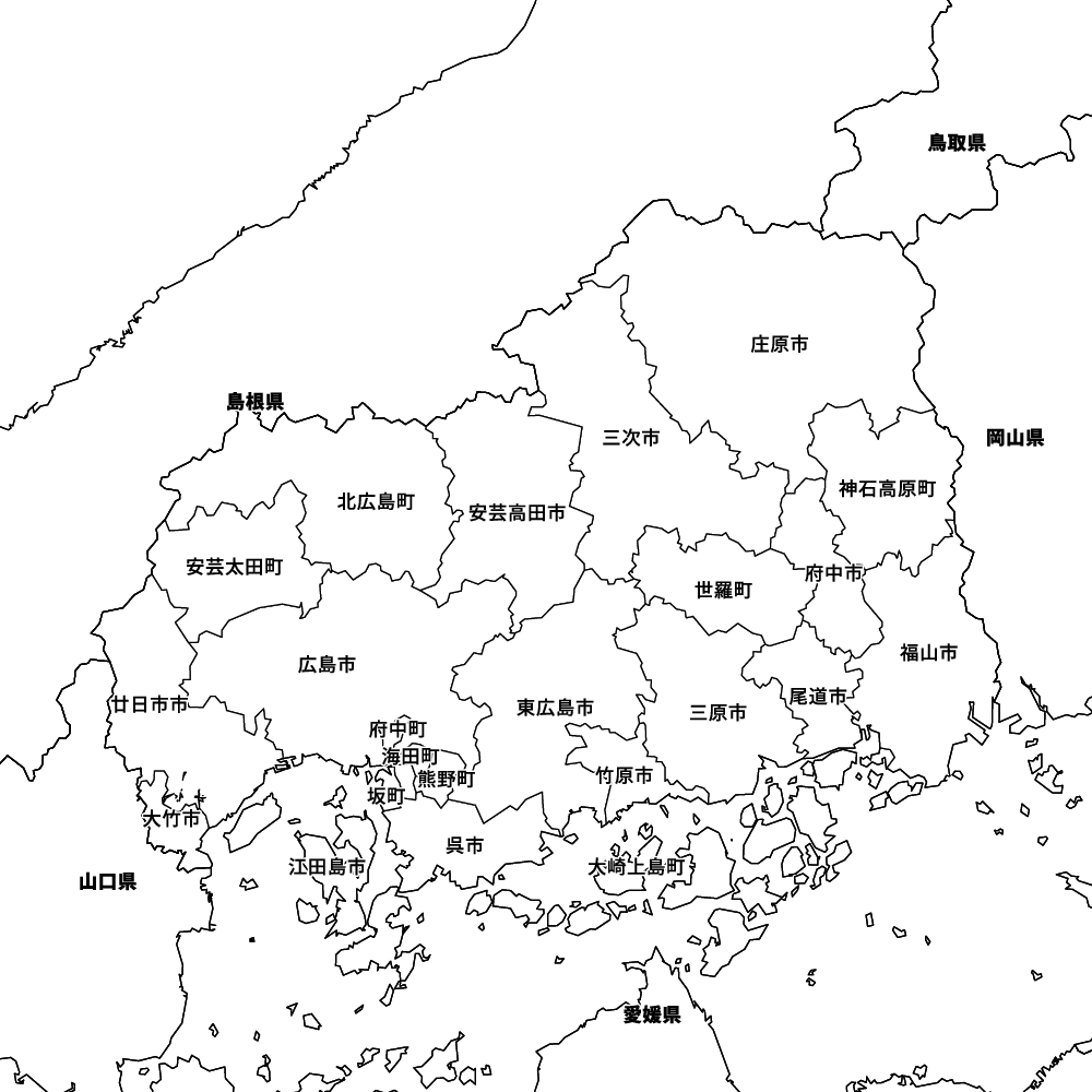 広島県の地図を表示します。 マップ・イットは、地図素材や白地図が無料でダウンロードできるサイトです。印刷やWebなどの素材として商用利用できます。対応する地域は日本全域、八地方区分、47都道府県、政令指定都市、特別区、市町村です。