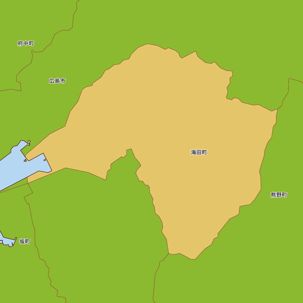 広島県安芸郡海田町の地図を表示します。 マップ・イットは、地図素材や白地図が無料でダウンロードできるサイトです。印刷やWebなどの素材として商用利用できます。対応する地域は日本全域、八地方区分、47都道府県、政令指定都市、特別区、市町村です。