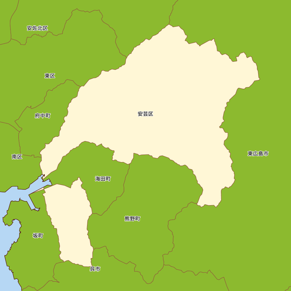 広島県広島市安芸区の地図を表示します。 マップ・イットは、地図素材や白地図が無料でダウンロードできるサイトです。印刷やWebなどの素材として商用利用できます。対応する地域は日本全域、八地方区分、47都道府県、政令指定都市、特別区、市町村です。
