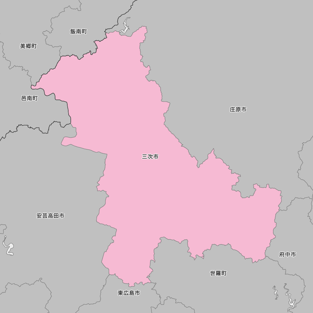 広島県三次市の地図を表示します。 マップ・イットは、地図素材や白地図が無料でダウンロードできるサイトです。印刷やWebなどの素材として商用利用できます。対応する地域は日本全域、八地方区分、47都道府県、政令指定都市、特別区、市町村です。