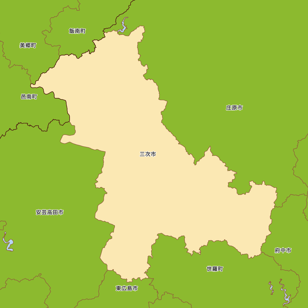 広島県三次市の地図を表示します。 マップ・イットは、地図素材や白地図が無料でダウンロードできるサイトです。印刷やWebなどの素材として商用利用できます。対応する地域は日本全域、八地方区分、47都道府県、政令指定都市、特別区、市町村です。