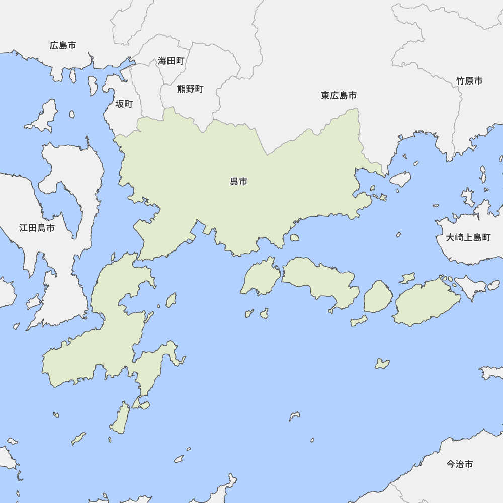 広島県呉市の地図を表示します。 マップ・イットは、地図素材や白地図が無料でダウンロードできるサイトです。印刷やWebなどの素材として商用利用できます。対応する地域は日本全域、八地方区分、47都道府県、政令指定都市、特別区、市町村です。