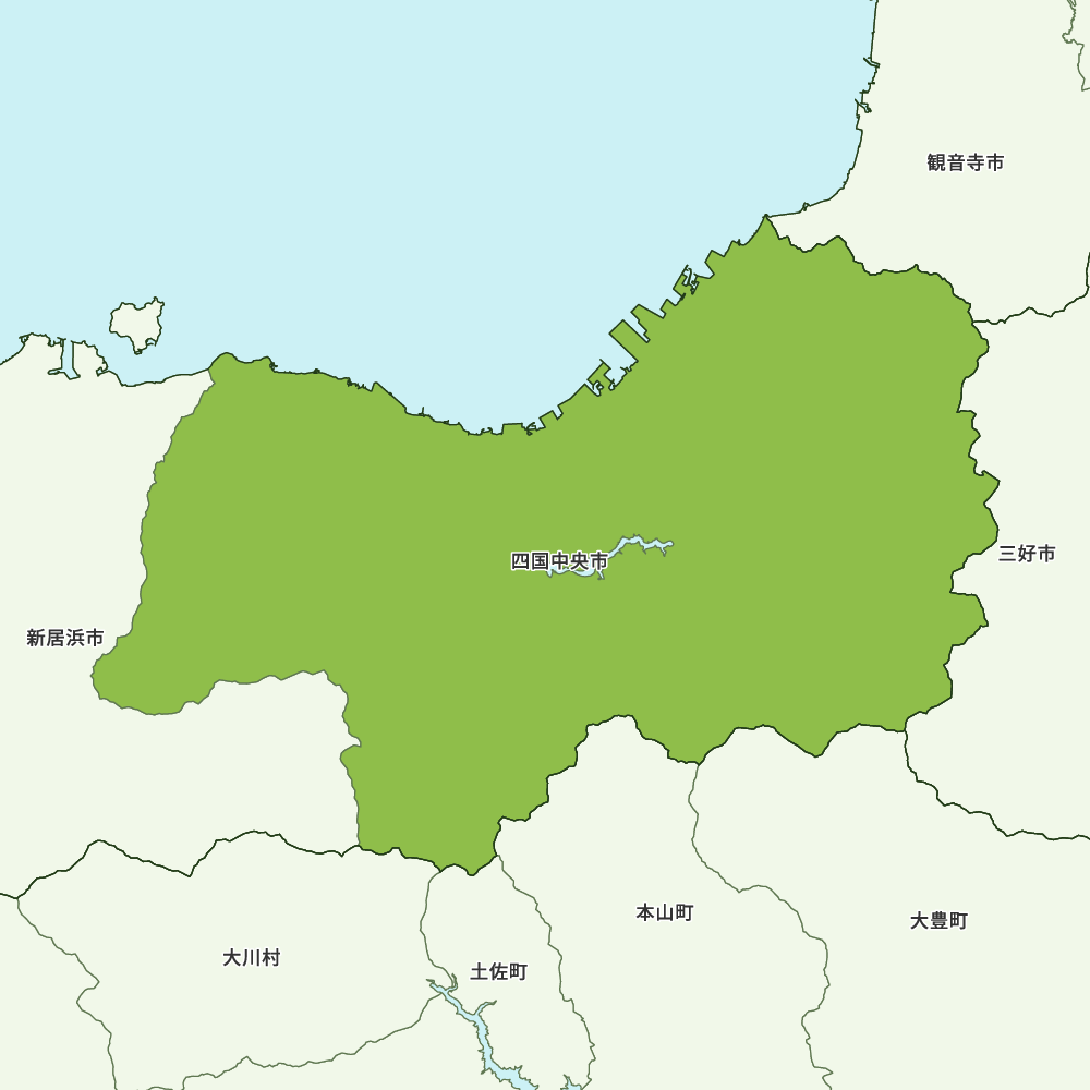 四国中央市は、愛媛県の東端に位置する市。四国の他の3県に接している。