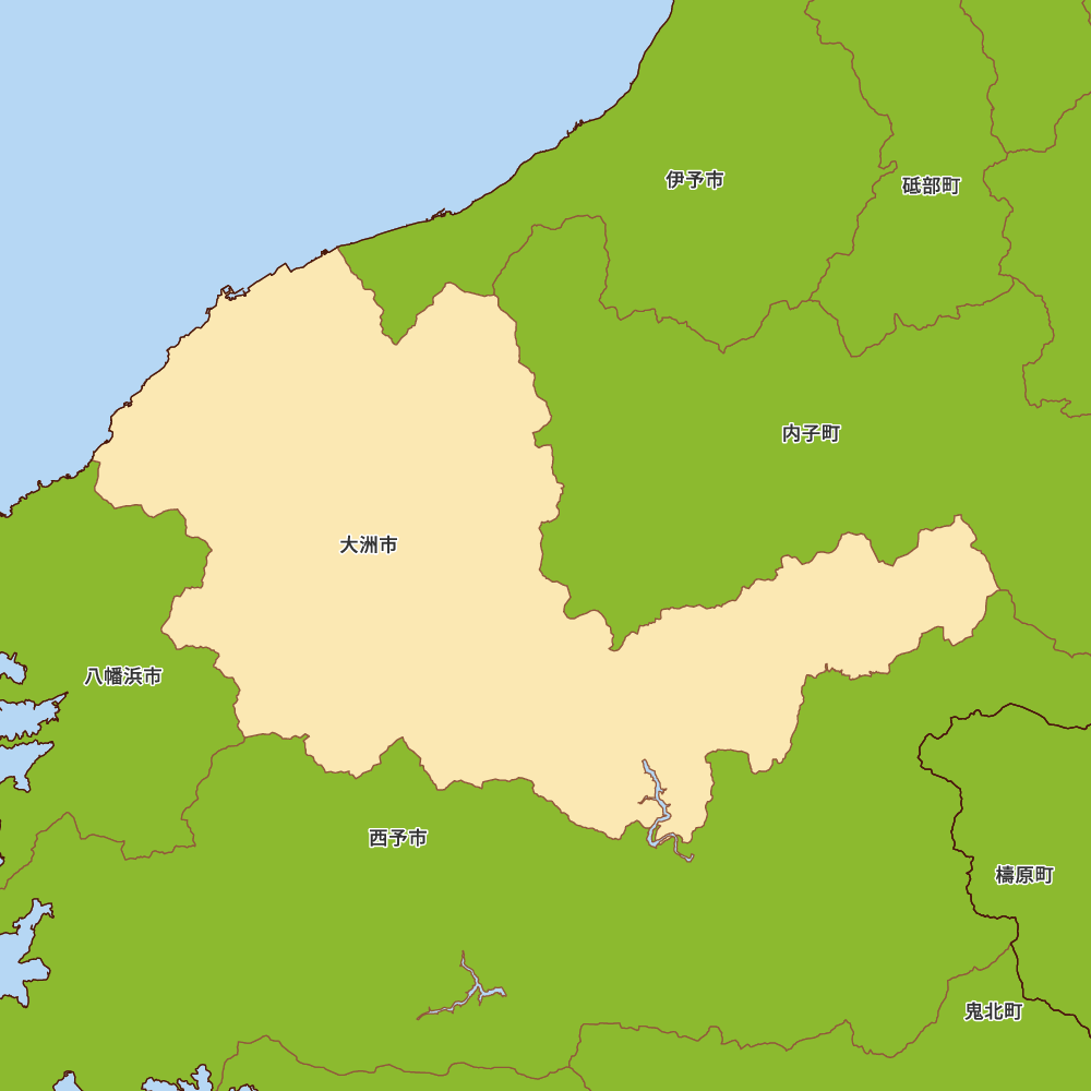 愛媛県大洲市の地図を表示します。 マップ・イットは、地図素材や白地図が無料でダウンロードできるサイトです。印刷やWebなどの素材として商用利用できます。対応する地域は日本全域、八地方区分、47都道府県、政令指定都市、特別区、市町村です。