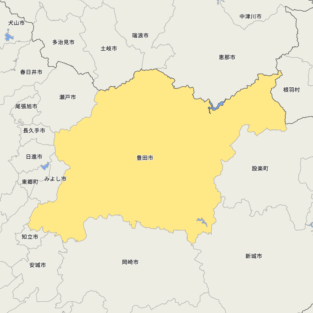 愛知県豊田市の地図を表示します。 マップ・イットは、地図素材や白地図が無料でダウンロードできるサイトです。印刷やWebなどの素材として商用利用できます。対応する地域は日本全域、八地方区分、47都道府県、政令指定都市、特別区、市町村です。
