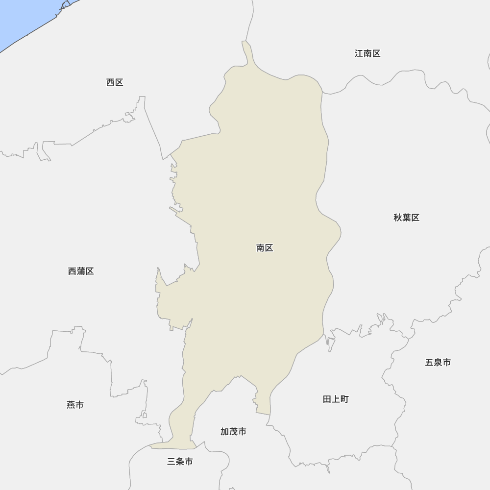 新潟県新潟市南区の地図を表示します。 マップ・イットは、地図素材や白地図が無料でダウンロードできるサイトです。印刷やWebなどの素材として商用利用できます。対応する地域は日本全域、八地方区分、47都道府県、政令指定都市、特別区、市町村です。