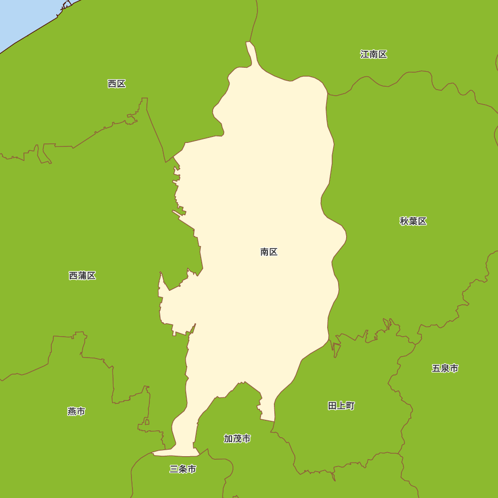 新潟県新潟市南区の地図を表示します。 マップ・イットは、地図素材や白地図が無料でダウンロードできるサイトです。印刷やWebなどの素材として商用利用できます。対応する地域は日本全域、八地方区分、47都道府県、政令指定都市、特別区、市町村です。