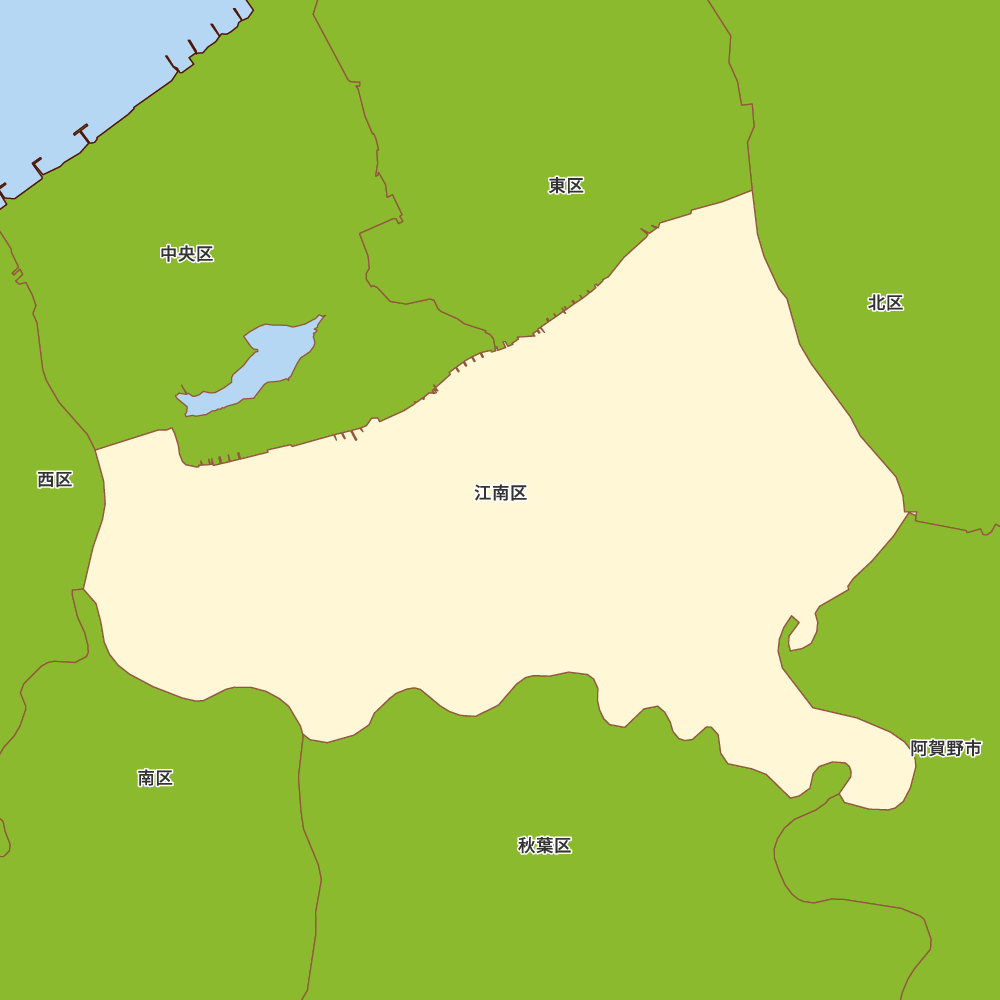新潟県新潟市江南区の地図を表示します。 マップ・イットは、地図素材や白地図が無料でダウンロードできるサイトです。印刷やWebなどの素材として商用利用できます。対応する地域は日本全域、八地方区分、47都道府県、政令指定都市、特別区、市町村です。