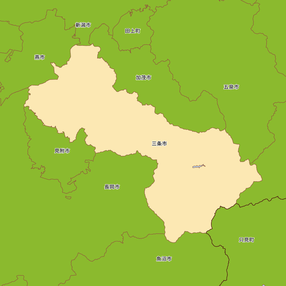 新潟県三条市の地図を表示します。 マップ・イットは、地図素材や白地図が無料でダウンロードできるサイトです。印刷やWebなどの素材として商用利用できます。対応する地域は日本全域、八地方区分、47都道府県、政令指定都市、特別区、市町村です。