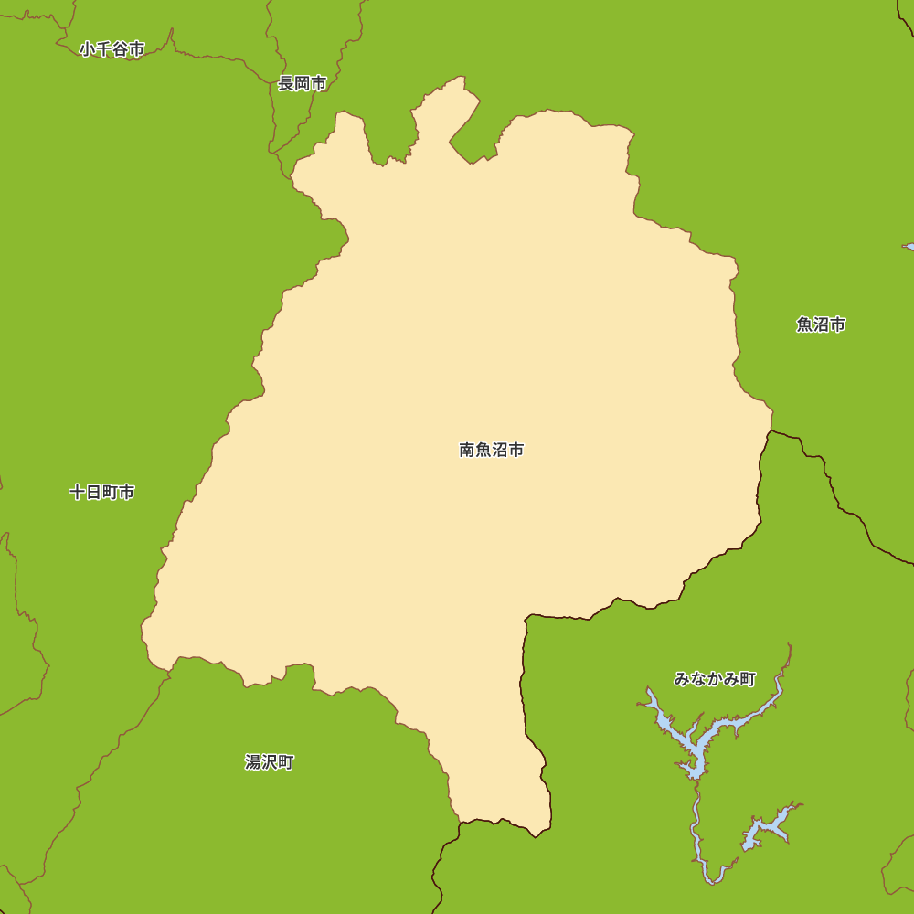 新潟県南魚沼市の地図を表示します。 マップ・イットは、地図素材や白地図が無料でダウンロードできるサイトです。印刷やWebなどの素材として商用利用できます。対応する地域は日本全域、八地方区分、47都道府県、政令指定都市、特別区、市町村です。