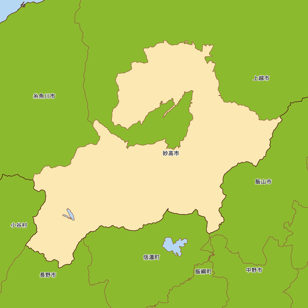 新潟県妙高市の地図を表示します。 マップ・イットは、地図素材や白地図が無料でダウンロードできるサイトです。印刷やWebなどの素材として商用利用できます。対応する地域は日本全域、八地方区分、47都道府県、政令指定都市、特別区、市町村です。