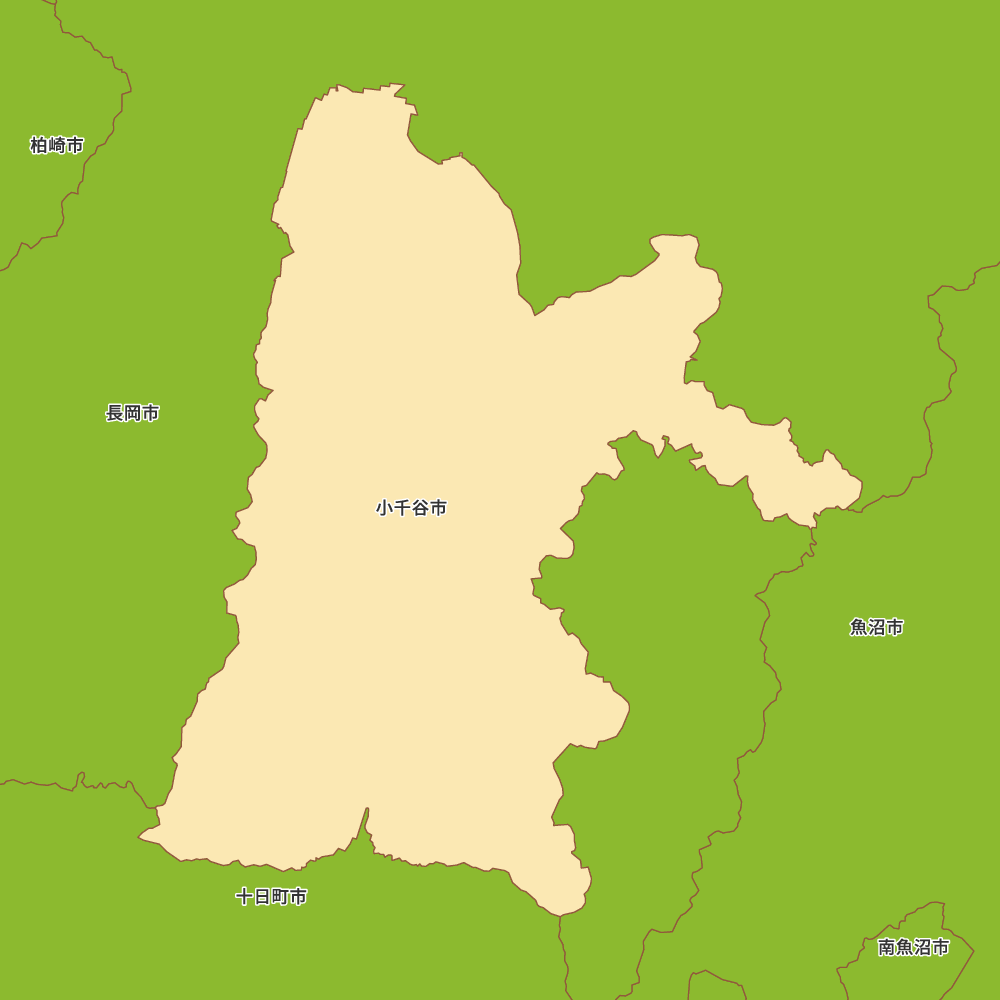 新潟県小千谷市の地図を表示します。 マップ・イットは、地図素材や白地図が無料でダウンロードできるサイトです。印刷やWebなどの素材として商用利用できます。対応する地域は日本全域、八地方区分、47都道府県、政令指定都市、特別区、市町村です。
