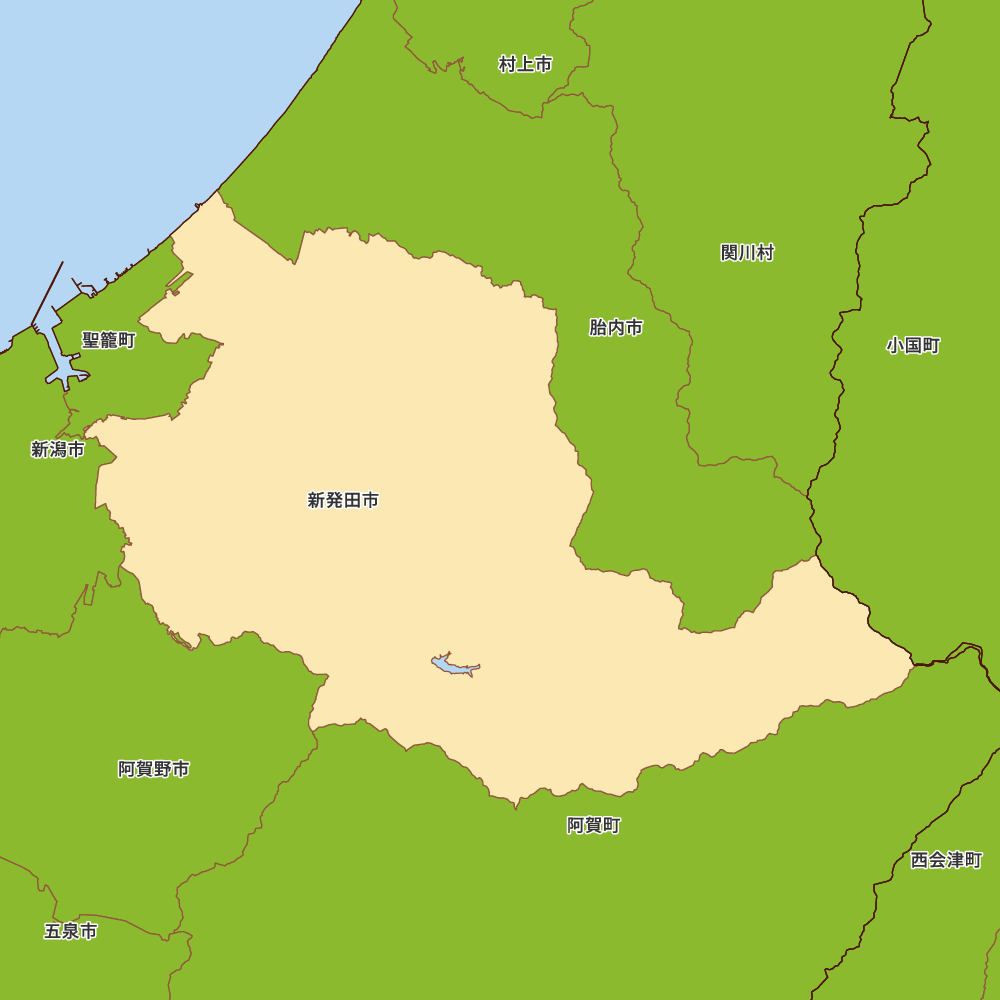 新潟県新発田市の地図を表示します。 マップ・イットは、地図素材や白地図が無料でダウンロードできるサイトです。印刷やWebなどの素材として商用利用できます。対応する地域は日本全域、八地方区分、47都道府県、政令指定都市、特別区、市町村です。