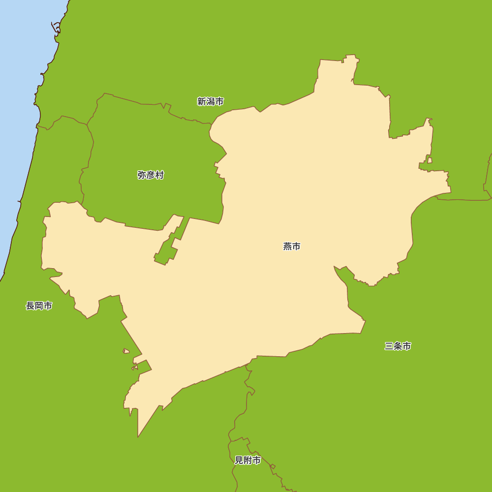 新潟県燕市の地図を表示します。 マップ・イットは、地図素材や白地図が無料でダウンロードできるサイトです。印刷やWebなどの素材として商用利用できます。対応する地域は日本全域、八地方区分、47都道府県、政令指定都市、特別区、市町村です。
