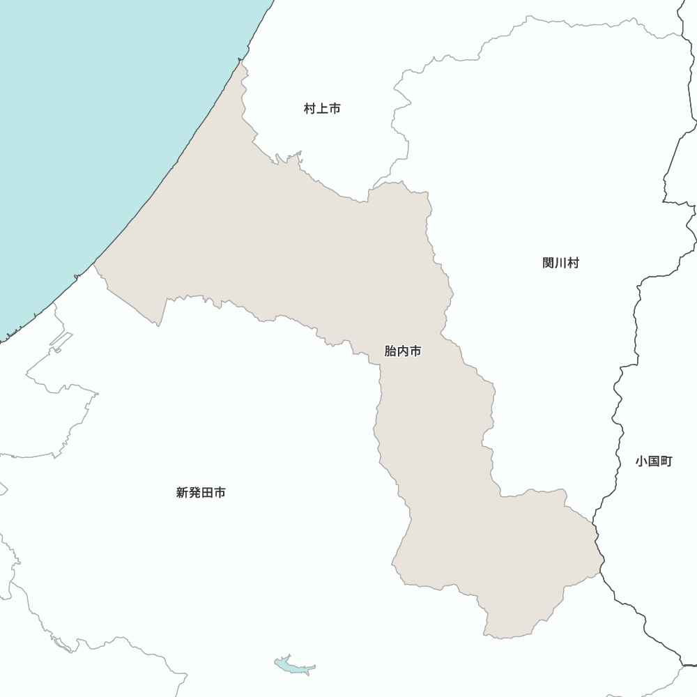 新潟県胎内市の地図を表示します。 マップ・イットは、地図素材や白地図が無料でダウンロードできるサイトです。印刷やWebなどの素材として商用利用できます。対応する地域は日本全域、八地方区分、47都道府県、政令指定都市、特別区、市町村です。