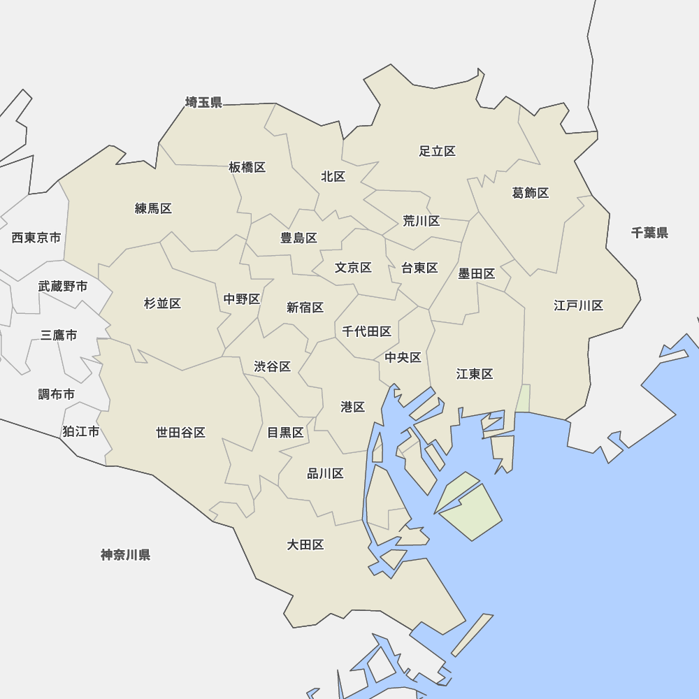 東京都の地図を表示します。 マップ・イットは、地図素材や白地図が無料でダウンロードできるサイトです。印刷やWebなどの素材として商用利用できます。対応する地域は日本全域、八地方区分、47都道府県、政令指定都市、特別区、市町村です。