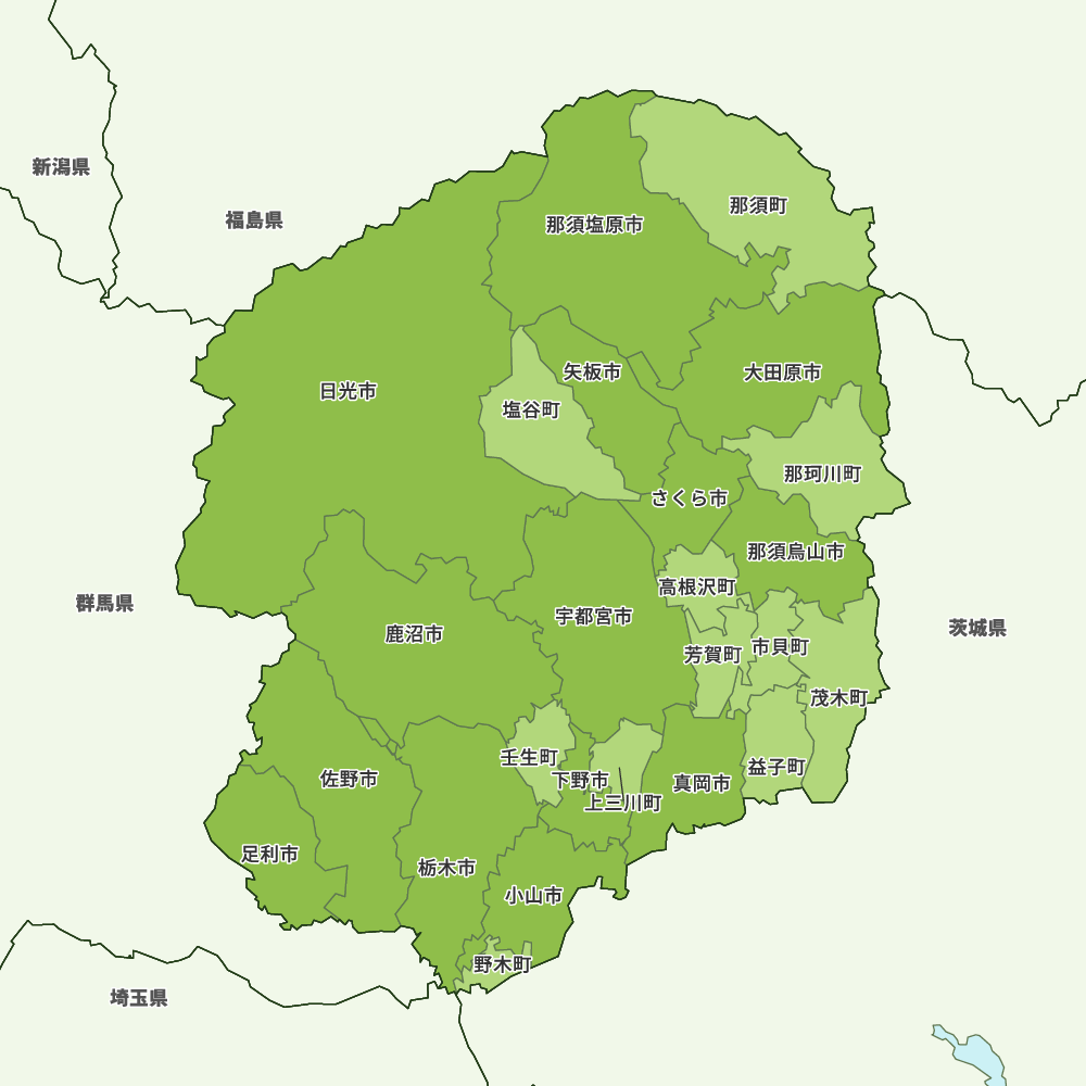 栃木県の地図を表示します。 マップ・イットは、地図素材や白地図が無料でダウンロードできるサイトです。印刷やWebなどの素材として商用利用できます。対応する地域は日本全域、八地方区分、47都道府県、政令指定都市、特別区、市町村です。